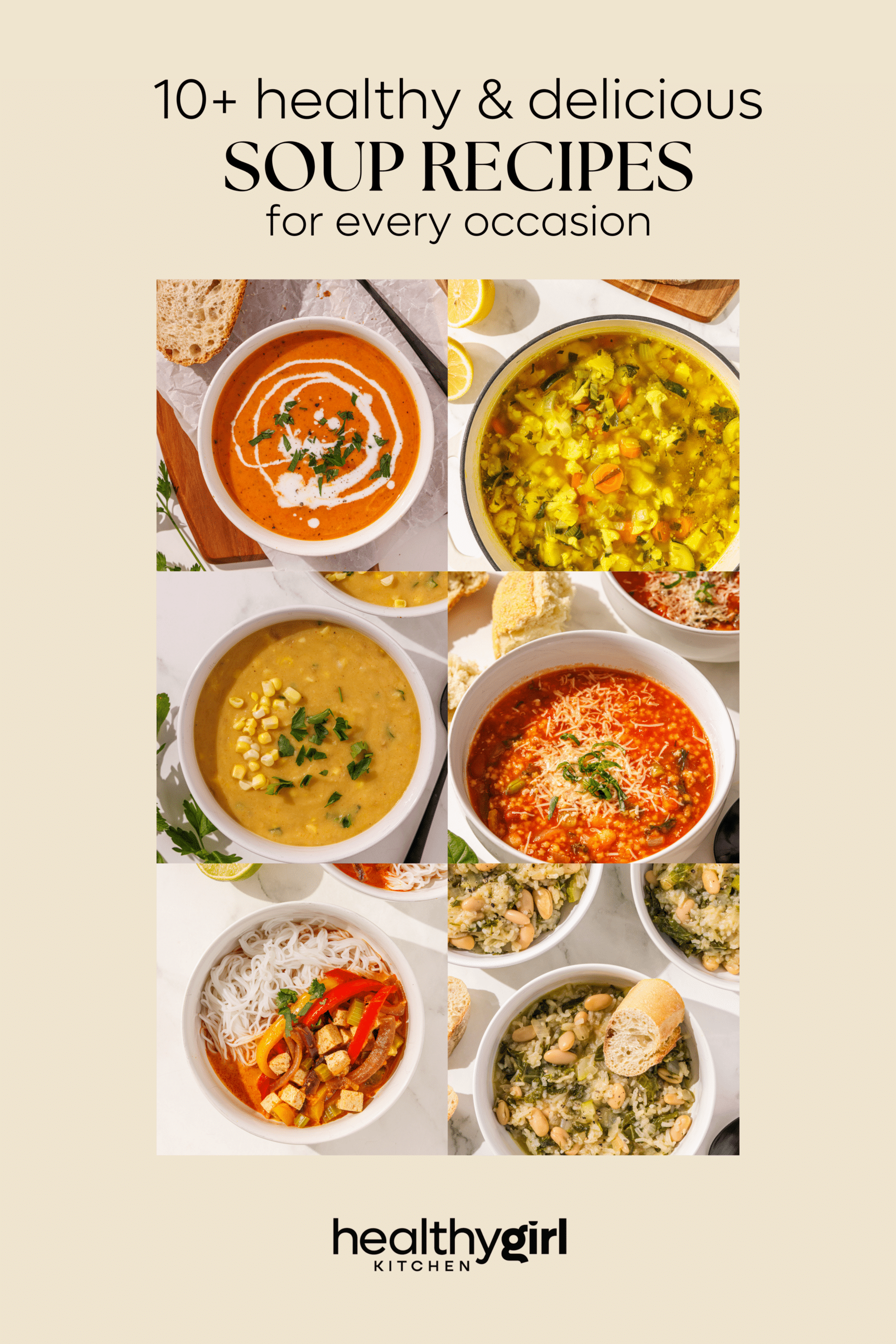 If you love healthy recipes like these soups or you are looking for more plant-based recipe inspiration, I’ve created TWO New York Time’s Best Selling cookbooks with you in mind. My first cookbook, HealthyGirl Kitchen, will be your healthy eating bible with 100+ plant-based recipes ranging from soups and pasta to breakfasts and treats. My second cookbook, Life Changing Salads, was inspired by my viral social media Life Changing Salads series and features 100 of the most insanely delicious salad recipes that will make you fall in love with healthy eating.